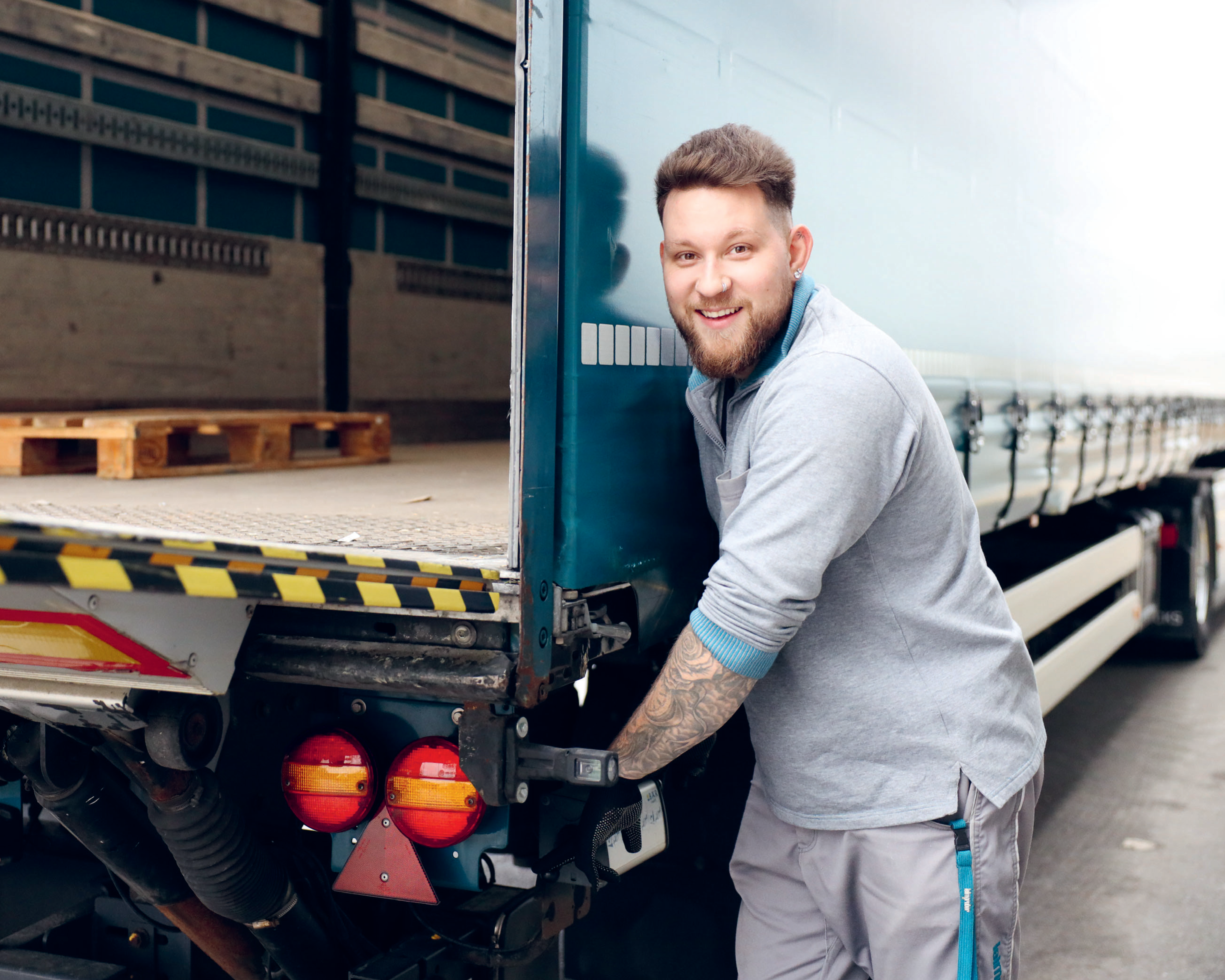 Frühmorgens steht der Lastwagen der Paul Leimgruber AG pünktlich am Bahnhof Egerkingen bereit. Am Steuer sitzt Alessio Mutti, ein sympathischer und aufgeweckter junger Mann, der STR für einen Tag in seinem Arbeitsalltag mitnimmt. Alessio hat keine Anzeichen von Müdigkeit – und das, obwohl er bereits um 4.30 Uhr aufgestanden ist, um den Lastwagen mit Stückgut zu beladen. «Dank meines ADHS brauche ich deutlich weniger Schlaf als andere Menschen», erklärt er mit einem Grinsen.